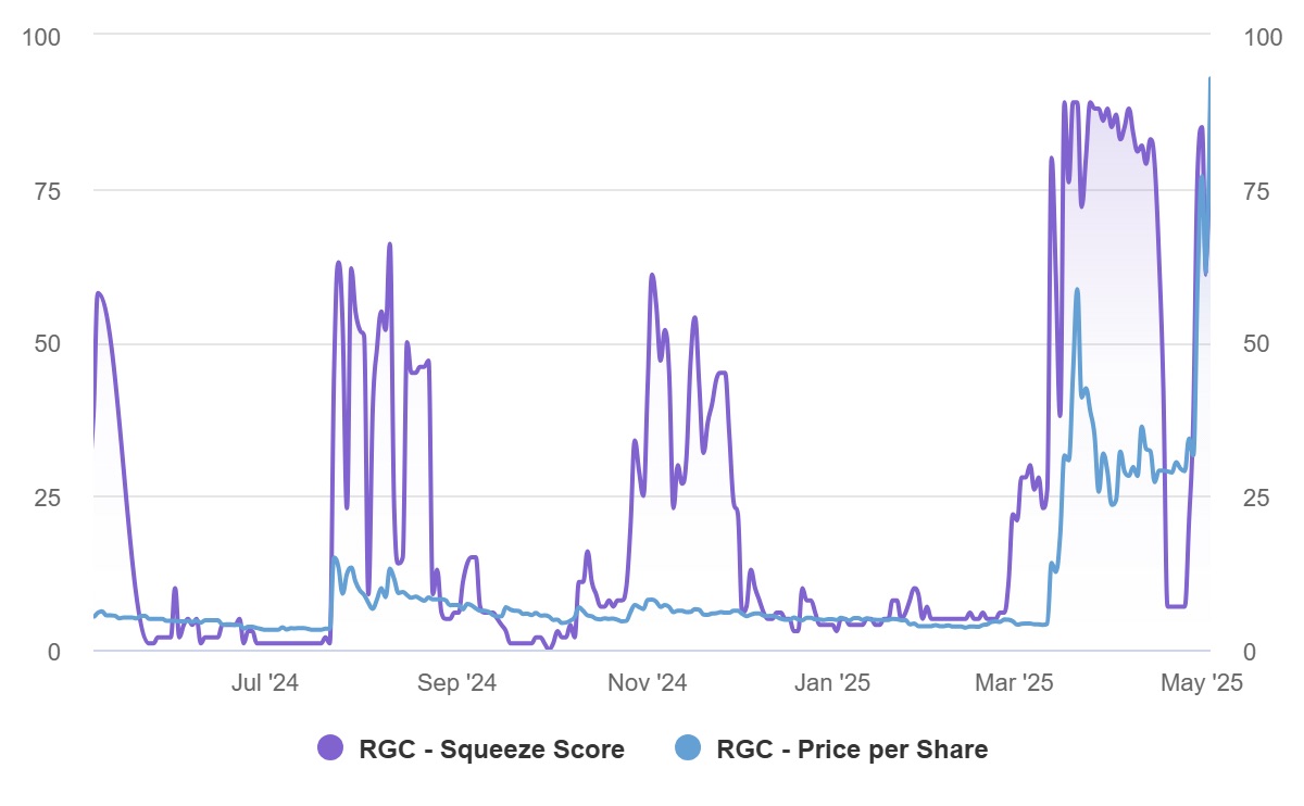 Note: Data as of May 6, 2025. EquiLend Short Squeeze Score ranges from 0-100, with higher scores indicating greater likelihood of a short squeeze.