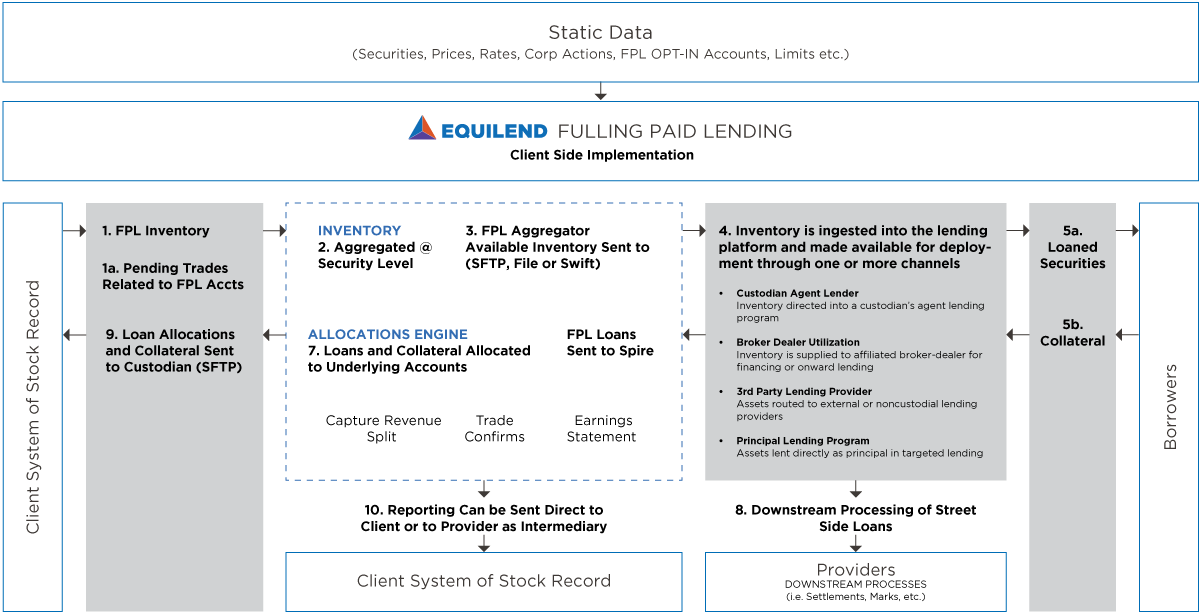 As part of the EquiLend Spire suite of Securities Finance Platform Solutions, EquiLend’s Fully Paid Lending (FPL) system delivers a comprehensive FPL engine to firms which offer FPL as a service, as well as a full-fledged solution for those looking to start an FPL offering.
